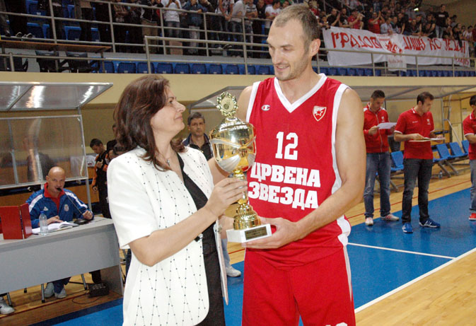 Pehar namenjen osvajaču kupa kapitenu Crvene zvezde Marku Simonoviću uručila je gradonačelnica Smedereva dr Jasna Avramović.