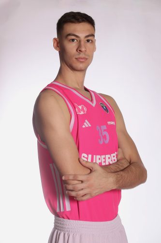 Lazar Gačić was born on January 31, 2005, in Belgrade. He is 214 centimeters tall and plays the center position. He joined Mega from OKK Beograd, where he played during the 2023/24 and 2024/25 seasons. As a junior, Gačić played for Mega in 2024 at the U19 ABA League Final Tournament in Novi Pazar.